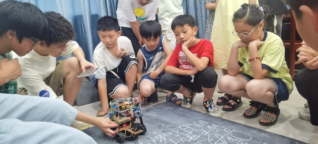 3044am永利集团3044noc电子信息学院为孩子们进行“科技悦启蒙,留守不孤单”实践活动,活动分为显微镜的使用与观察、“火山”实验、无线遥控智能车的讲解、亮灯电路板四个小实验现场演示,让孩子们现场操作来感受科技的魅力,激发孩子们科技探索精神。